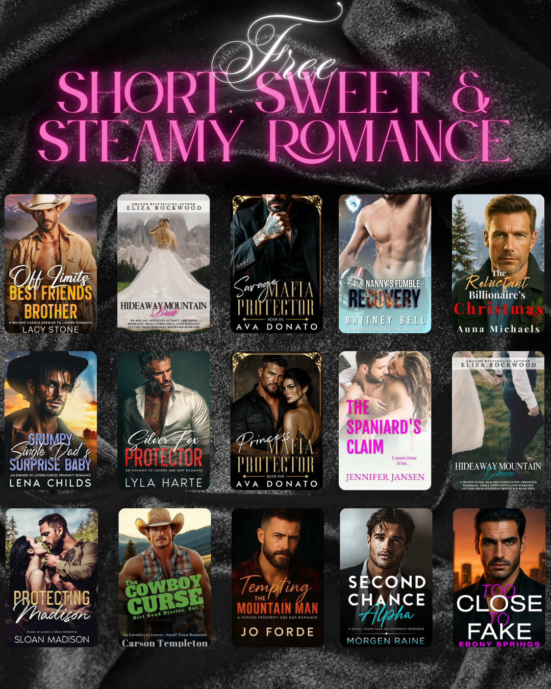 Here you can subscribe to my newsletter and check out all my current download links for free books and sales below. Already on my list?